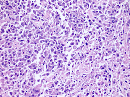 Hình 12. ChRCC kiểu sarcomatoid với các tế bào hình thoi và dạng rhabdoid có mức độ không điển hình cao.