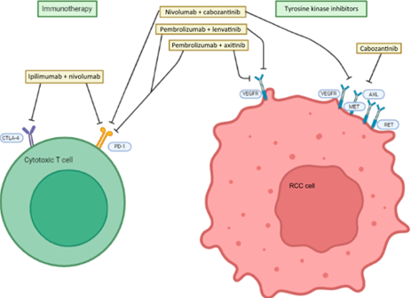 - Các lựa chọn đơn trị liệu khác bao gồm sunitinib và pembrolizumab.