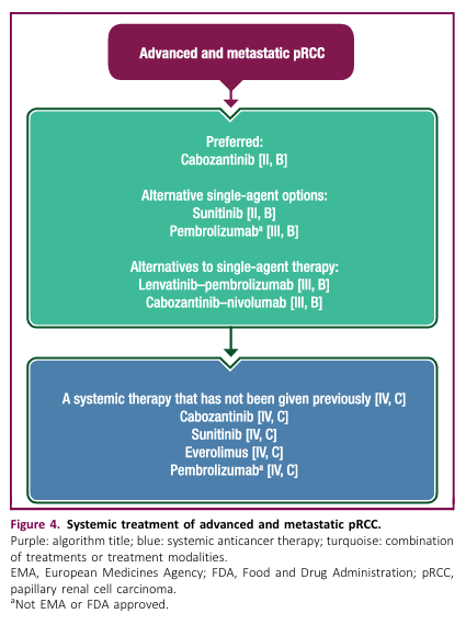 Một thuật toán điều trị toàn thân cho pRCC tiến triển và di căn được trình bày trong Hình 4.