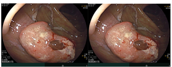 Hình 3. Tổn thương khối lồi xuất hiện ở vùng đại tràng lên