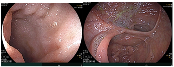Nội soi đại tràng( thời điểm sau phẫu thuật): Đã phẫu thuật cắt đại tràng phải, nối kiểu tận bên, niêm mạc miệng nối bình thường.