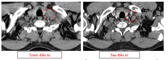 Hình 07: Hạch thượng đòn trái giảm đáng kể kích thước, từ 22mm còn 7mm sau điều trị