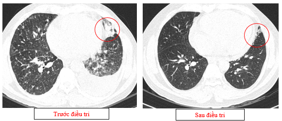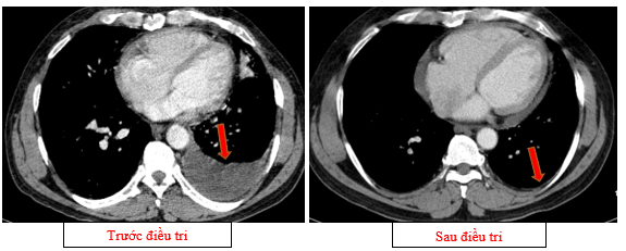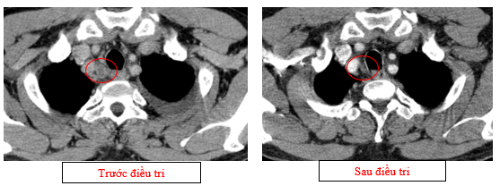 Lâm sàng: Các triệu chứng cơ năng cải thiện rõ rệt: hết ho khan, không còn đau tức ngực, ăn uống và giấc ngủ cải thiện, không còn sờ thấy hạch thượng đòn, không có dấu hiệu thần kinh khu trú.