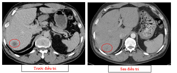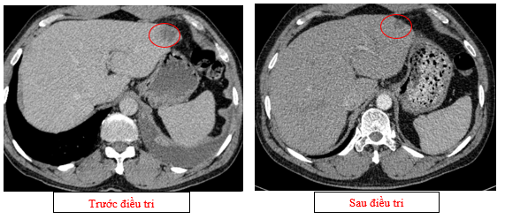 • Các tổn thương ngấm thuốc kém do di căn tại gan giảm kích thước đáng kể (27mm còn 8mm)