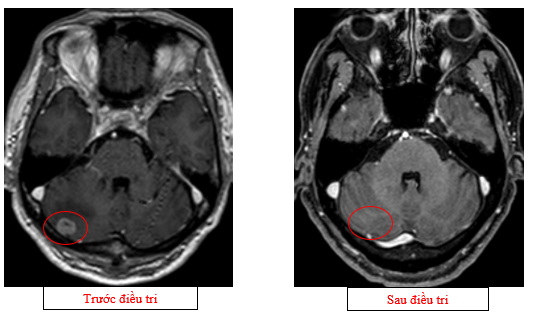 • Trên phim chụp cộng hưởng từ sọ não: không còn ghi nhận các ổ tổn thương di căn di não, phù não.
