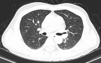 Hình 2: Hình ảnh chụp cắt lớp vi tính lồng ngực: Không thấy các tổn thương thứ phát
