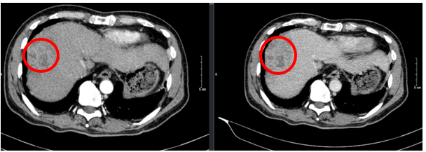 Như vậy: Bệnh nhân trên đây là 1 trường hợp Ung thư biểu mô tế bào gan BCLC B đã TACE 6 lần – Xơ gan Child pugh A – Viêm gan B đã được điều trị bằng phác đồ Atezolizumab – Bevacizumab được 20 chu kì, đem lại đáp ứng rất tốt thể hiện ở trên hình ảnh có thể thấy khối u giảm kích thước cũng như chỉ số AFP giảm mạnh, từ giai đoạn không thể phẫu thuật chuyển về giai đoạn có thể phẫu thuật, hiện tại bệnh ổn định. Trong thời gian sắp tới, bệnh nhân vẫn được tiếp tục điều trị phác đồ Atezolizumab – Bevacizumab và đồng thời đánh giá, phát hiện các thay đổi bất thường.