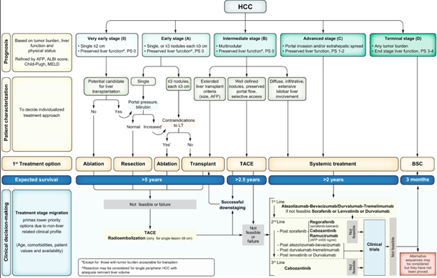 - Reig, Maria et al. BCLC strategy for prognosis prediction and treatment recommendation: The 2022 update. Journal of Hepatology. 2022. 76(3): 681 – 693.